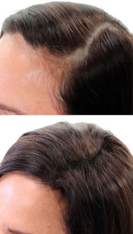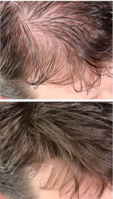 Distribuisci 5-10 gocce direttamente sulle zone diradate o uniformemente su tutto il cuoio capelluto.